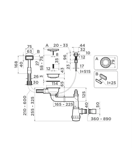 Арматура с клапаном-автоматом для одночашевых моек с прямоугольным переливом и декоративным элементом для корзины Omoikiri WK-1-A-IN