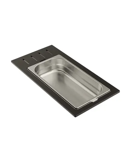 - Чаши свободно вынимаются из пластиковой подставки и перемещаются, а конструкция подставки разработана таким образом, чтобы ее можно было удобно разместить на внутренних ступенчатых направляющих моек: Sintesi 86, Sintesi 100 и Sintesi 116.