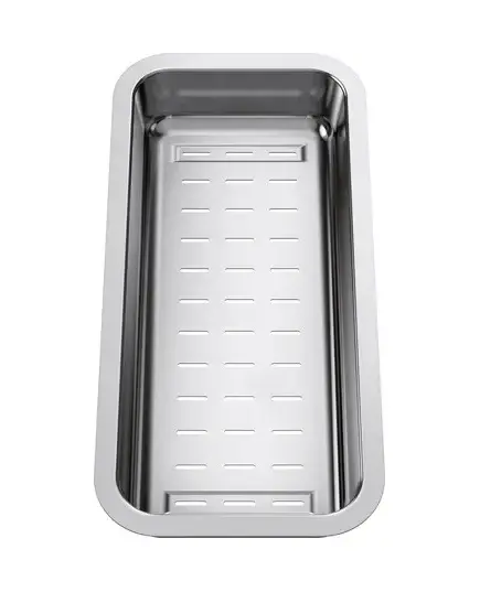 Многофункциональный коландер для моек серий Etagon. Долговечен и не подвержен коррозии благодаря высококачественной нержавеющей стали.