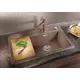 • Скользящую вдоль поверхности мойки многослойную разделочную доску из пластика и древесины ясеня можно использовать на любой из рабочих зон.