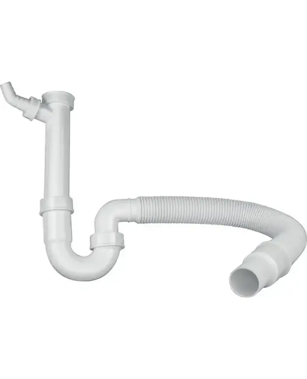 Сифон 1 1/2 с гофрированной трубкой выход на 40 и 50 мм. Материал пластик.