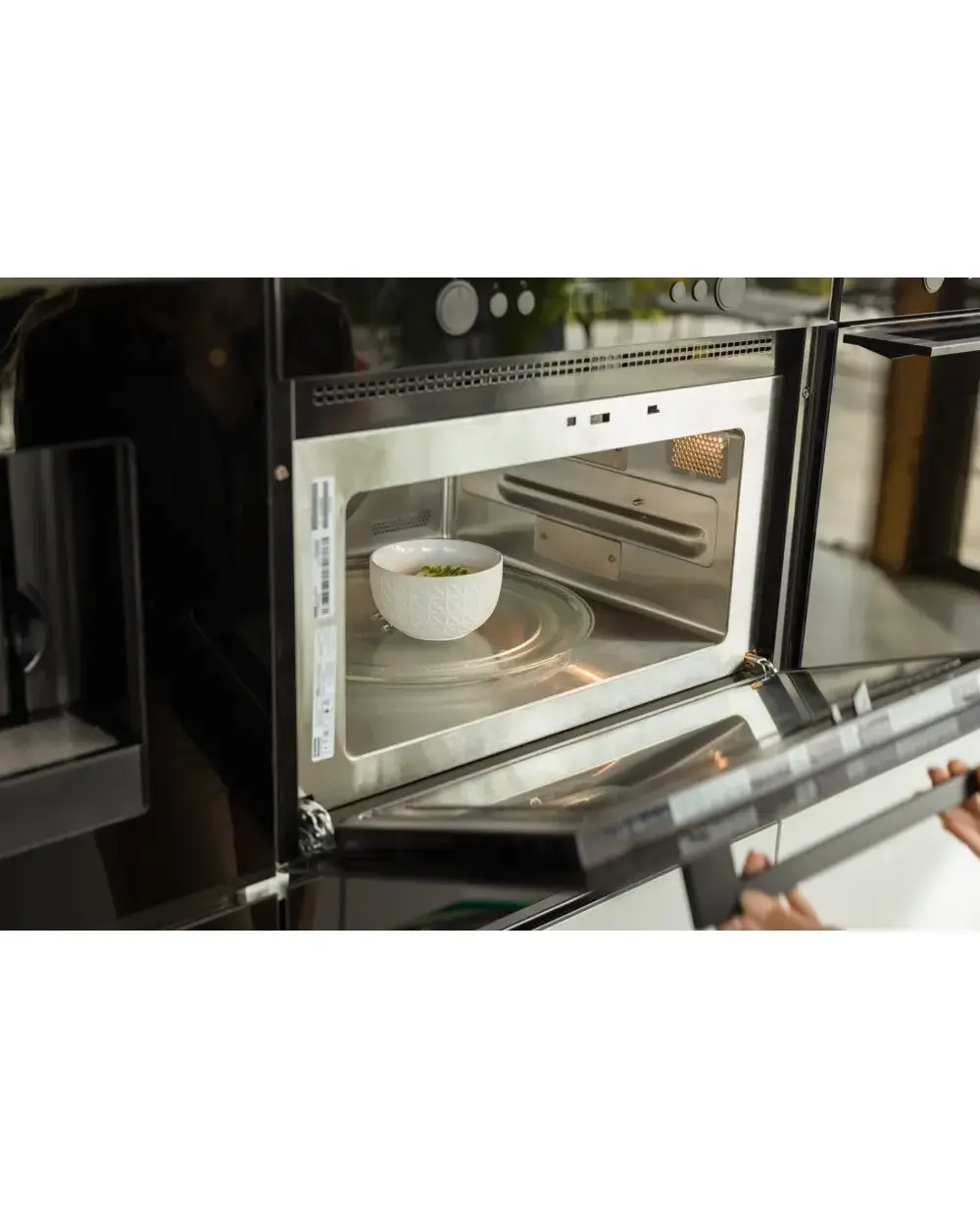 1 противень, емкость для приготовления на пару, решетка для гриля, стеклянная крышка для защиты от брызг жира, стеклянный поворотный стол Ø32,5