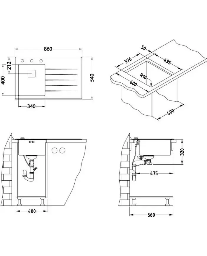 Размер мойки,мм