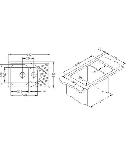 Размер мойки,мм