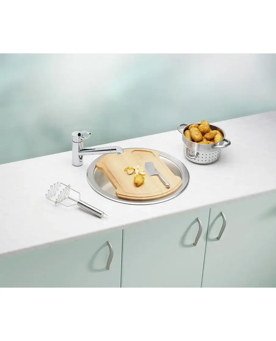БрендAlveus МатериалНержавеющая сталь ЦветНержавеющая сталь Размер мойки,мм⌀ 450 мм Размер чаши,мм450х385 Размер монтажной тумбы,см45 см Тип монтажаНакладной