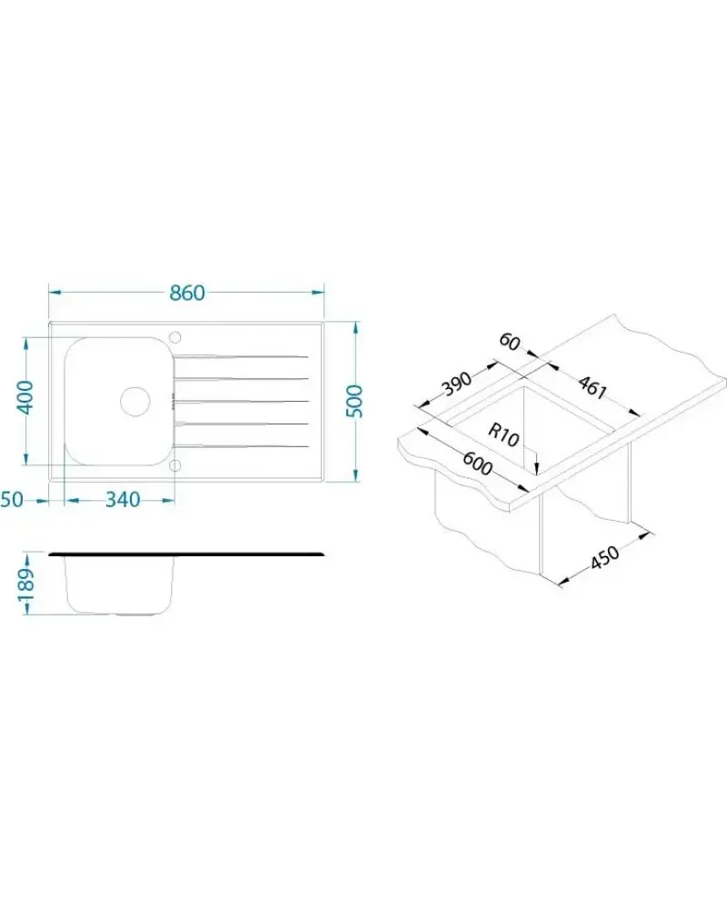 БрендAlveus МатериалНержавеющая сталь ЦветБелый Размер мойки,мм860х500 Размер чаши,мм400х340 Размер монтажной тумбы,см45 см Тип монтажаНакладной