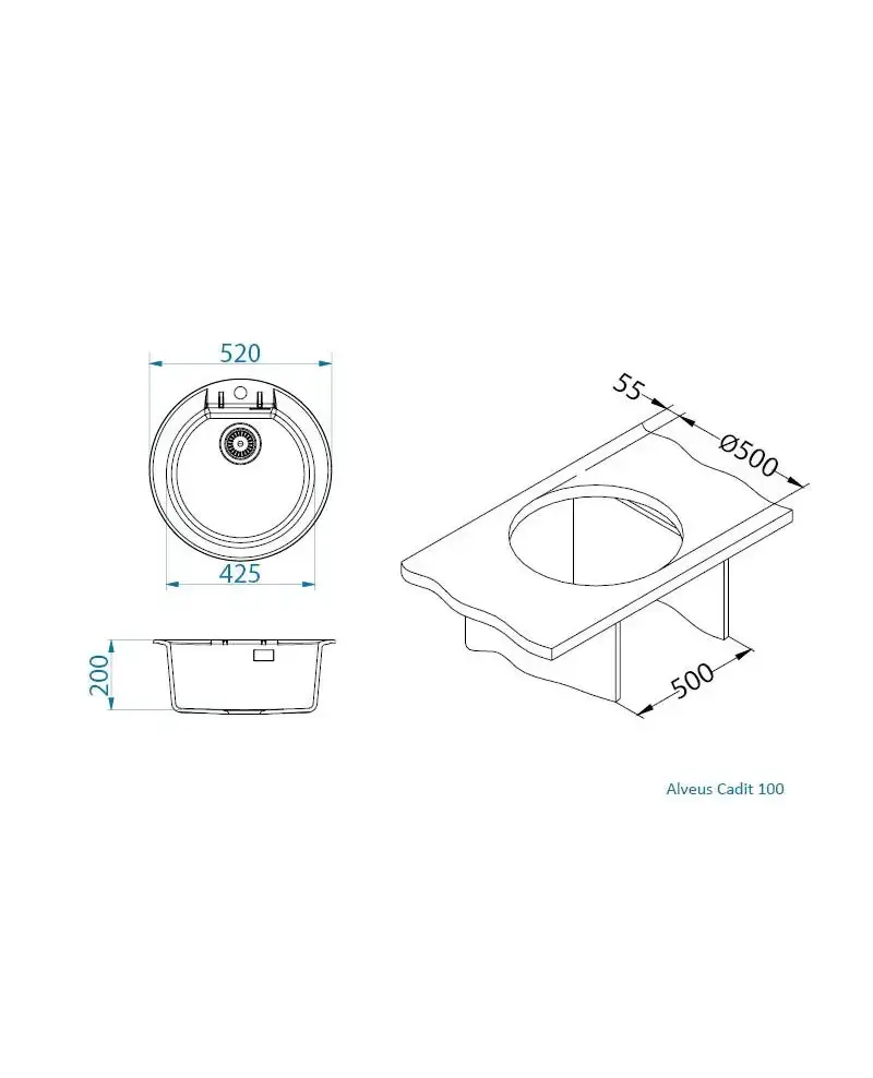 БрендAlveus МатериалGranital ЦветСерый Размер мойки,мм520 Размер чаши,мм520х425 Размер монтажной тумбы,см50 см Тип монтажаНакладной
