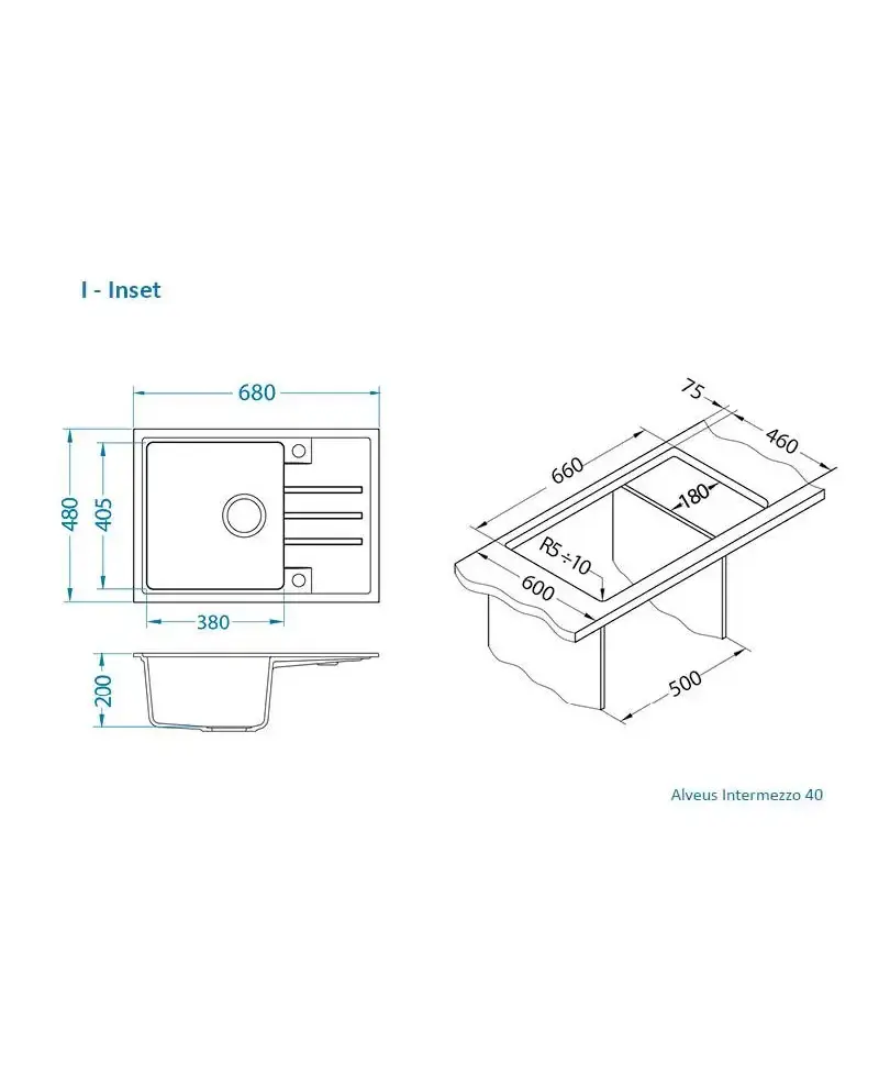 БрендAlveus МатериалGranital ЦветСерый Размер мойки,мм680х480 Размер чаши,мм405х380 Размер монтажной тумбы,см50 см Тип монтажаНакладной / Вровень со столешницей