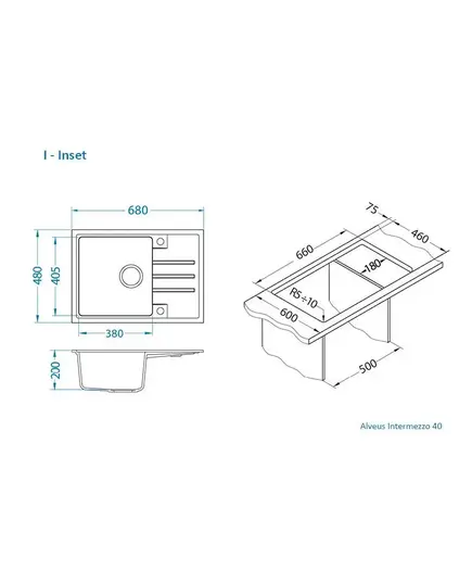 БрендAlveus МатериалGranital ЦветСерый беж Размер мойки,мм680х480 Размер чаши,мм405х380 Размер монтажной тумбы,см50 см Тип монтажаНакладной / Вровень со столешницей