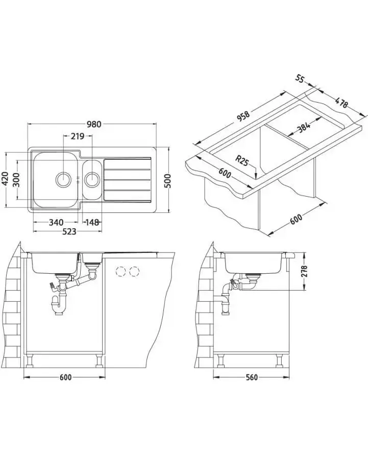 Размер мойки,мм