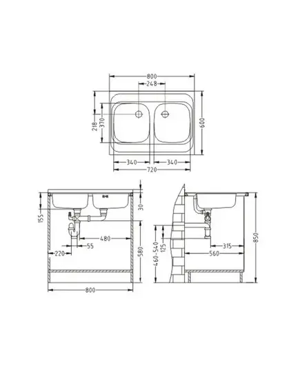 Размер мойки,мм