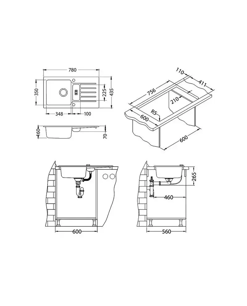 Размер мойки,мм