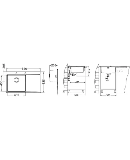 БрендAlveus МатериалНержавеющая сталь ЦветНержавеющая сталь Размер мойки,мм860х525 Размер чаши,мм450х400 Размер монтажной тумбы,см50 см Тип монтажаВровень со столешницей