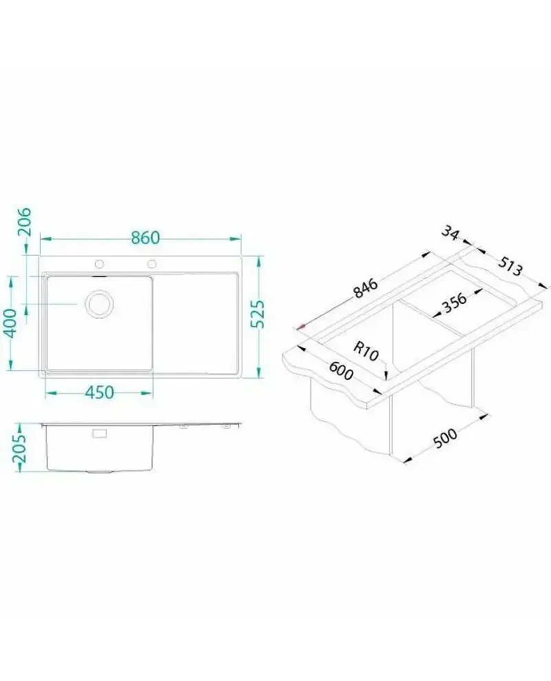 БрендAlveus МатериалНержавеющая сталь ЦветНержавеющая сталь Размер мойки,мм860х525 Размер чаши,мм450х400 Размер монтажной тумбы,см60 см Тип монтажаНакладной