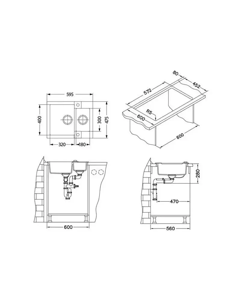БрендAlveus МатериалGranital ЦветАрктик Размер мойки,мм595х474 Размер чаши,мм400х320 Размер монтажной тумбы,см60 см Тип монтажаНакладной