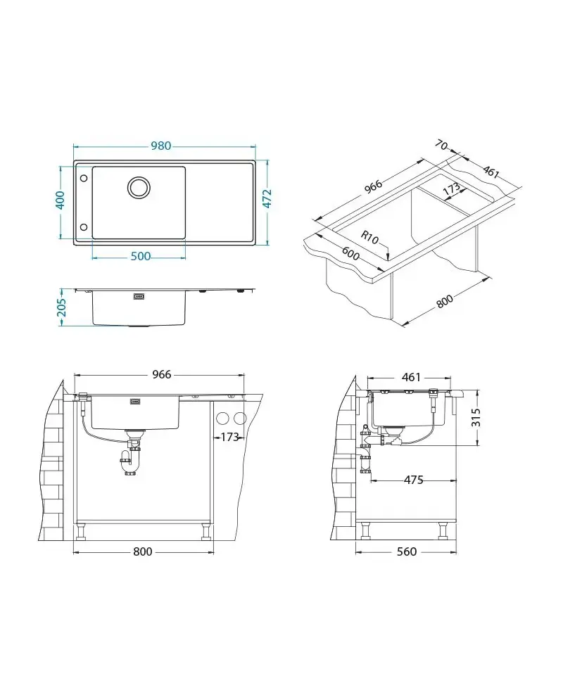 Размер мойки,мм
