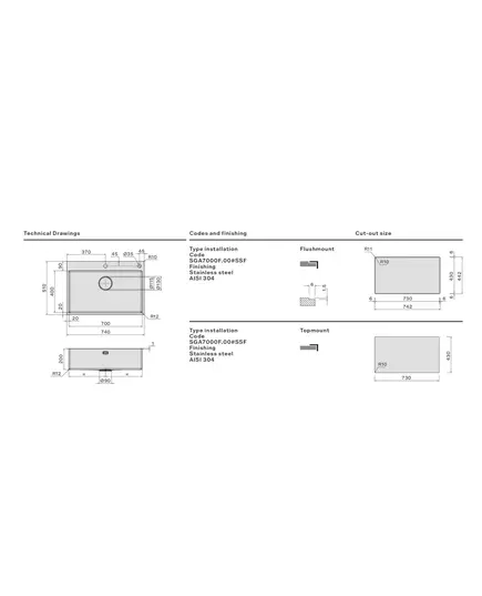 БрендFalmec ЦветНержавеющая сталь Размер мойки,мм740х510 Размер чаши,мм700х400 Размер монтажной тумбы,см80 см