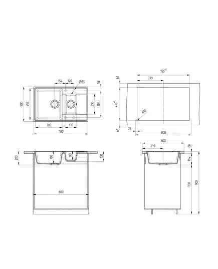 Размер мойки,мм