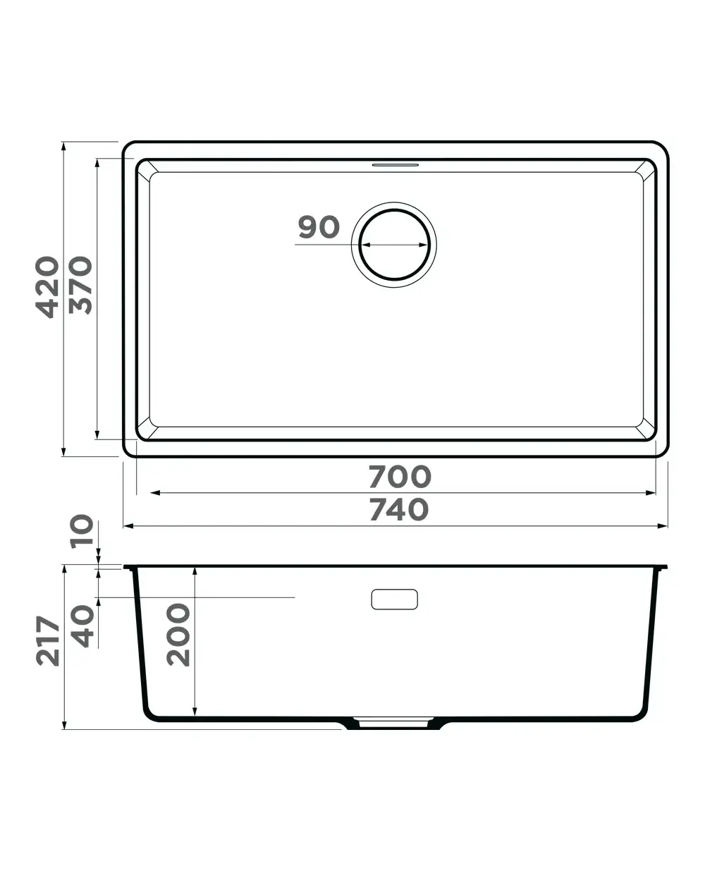 • Габариты мойки 740x420 мм — комфорт для широких столешниц.