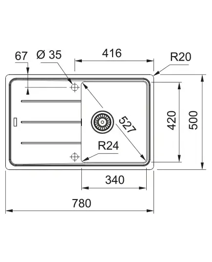 БрендFranke МатериалГранит ЦветСерый беж Размер мойки,мм780х500 Размер чаши,мм420х340 Размер монтажной тумбы,см45 см