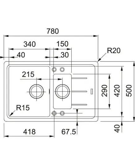 Размер мойки,мм