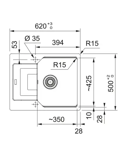 Размер мойки,мм