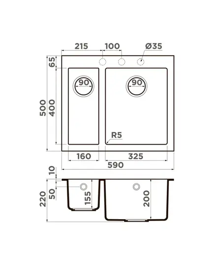 БрендOmoikiri ЦветГрафит Размер мойки,мм590х500 Размер чаши,мм325x400 Тип монтажаНакладной Гарантия 20 лет