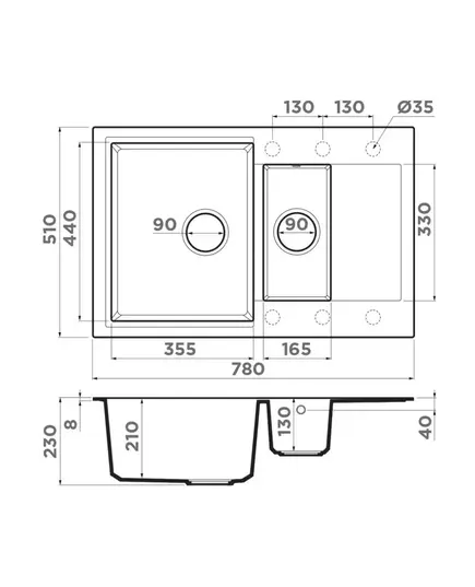 - Благодаря этому элементу мойка обретает устойчивость к воздействию различных кислот и щелочей, что гарантирует ее неизменный внешний вид.