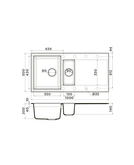 • Благодаря этому элементу мойка обретает устойчивость к воздействию различных кислот и щелочей, что гарантирует ее неизменный внешний вид.