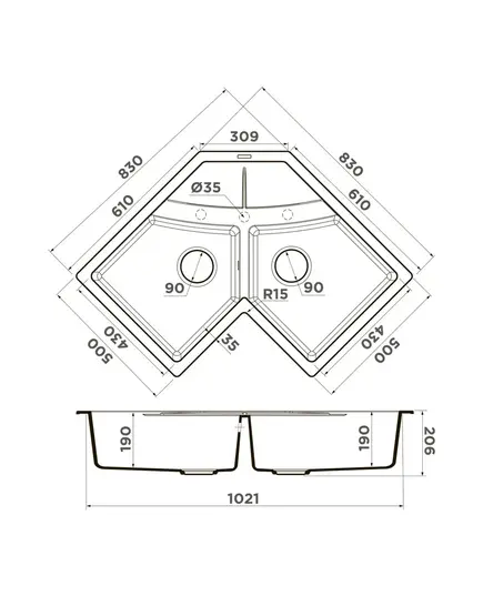 • Благодаря этому элементу мойка обретает устойчивость к воздействию различных кислот и щелочей, что гарантирует ее неизменный внешний вид.
