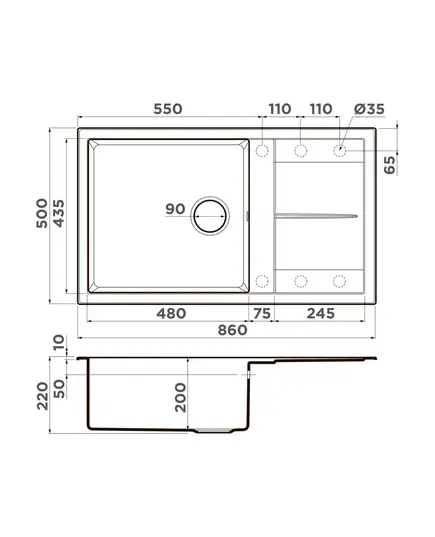 • Благодаря этому элементу мойка обретает устойчивость к воздействию различных кислот и щелочей, что гарантирует ее неизменный внешний вид.