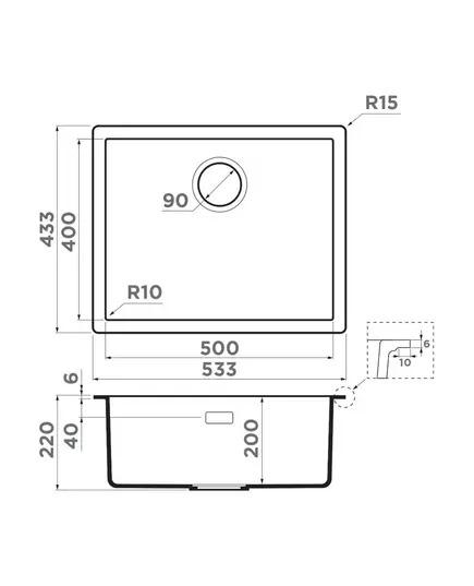 • Благодаря этому элементу мойка обретает устойчивость к воздействию различных кислот и щелочей, что гарантирует ее неизменный внешний вид.