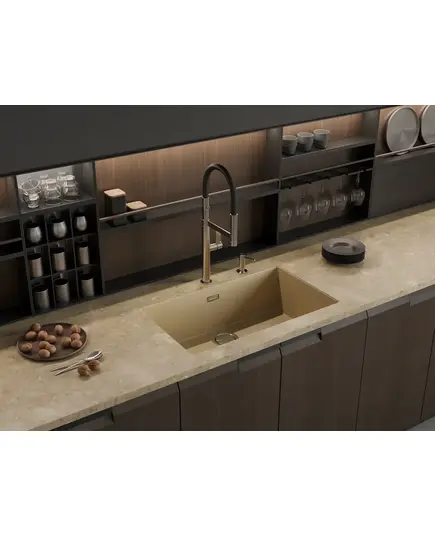 - Благодаря этому элементу мойка обретает устойчивость к воздействию различных кислот и щелочей, что гарантирует ее неизменный внешний вид.