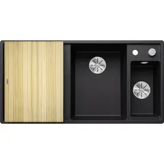 Простые линии и ультратонкий плоский кант  Скользящая деревянная разделочная доска позволяют сбрасывать нарезанные продукты непосредственно в посуду  Мойка Blanco AXIA III 6 S-R, 525851 смотрится элегантно и выглядит как единое целое и имеет первостепенное значение Раковина Blanco silgranit идеально подходят как для мытья посуды так и для приготовления пищи Коландер можно расположить в основной чаше для легкого приготовления пищи  Высококачественный перелив C-overflow® и отводная арматура InFino® элегантно интегрированы и очень просты в уходе