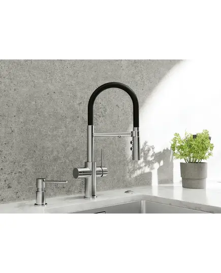 • Смеситель 3-в-1 для холодной и горячей воды справа, для фильтрованной питьевой воды слева