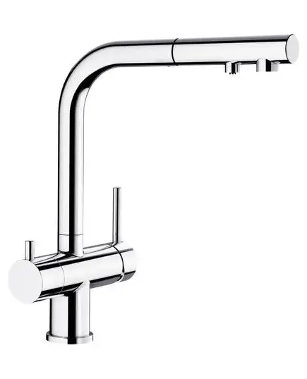- • Раздельное управление: рычаг для холодной и горячей воды справа и рычаг для фильтрованной воды слева