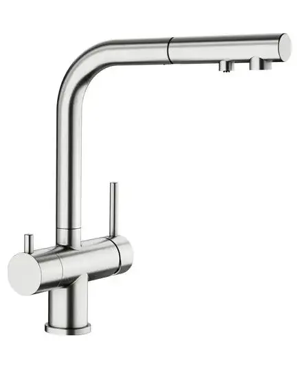 - • Удобный смеситель 3-в-1: фильтрованная и обычная вода из выдвижного излива