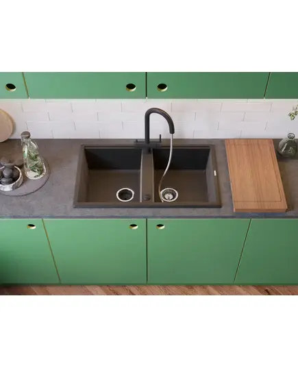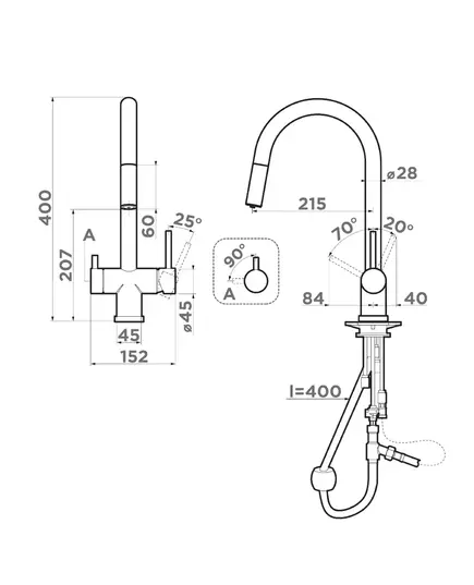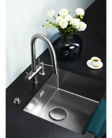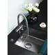 - Вытяжной шланг обеспечивает удобство использования смесителя, которое заключается в возможности мытья труднодоступных мест и бережной очистке мелких столовых приборов.