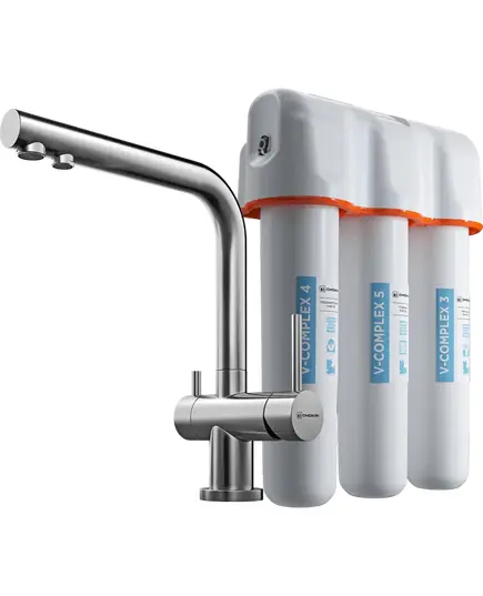 Комплект смеситель Nagano-C латунь/хром + водоочиститель PURE DROP Lite. Смеситель Nagano с функцией подключения фильтра для очистки воды - технология PURE LIFE. Соединительные шланги: усиленная 3х слойная цветная подводка, полный комплект соединений для подключения фильтров всех производителей. Набор креплений: металл. Водоочиститель OMOIKIRI Pure drop Lite с трехступенчатой системой очистки очищает воду от: