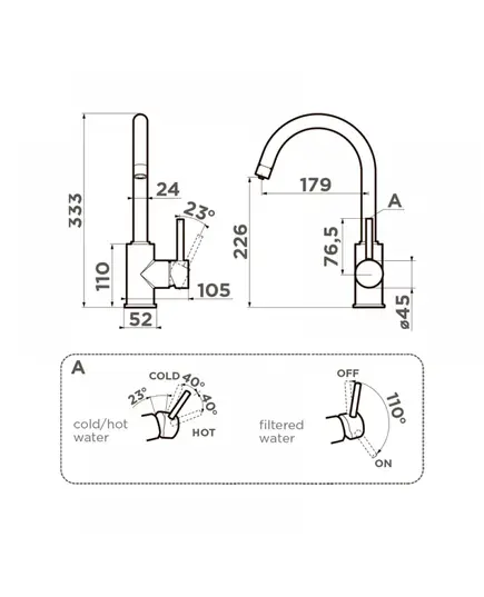 - Совет по уходу: После испарения воды на поверхности смесителя, образуются следы.