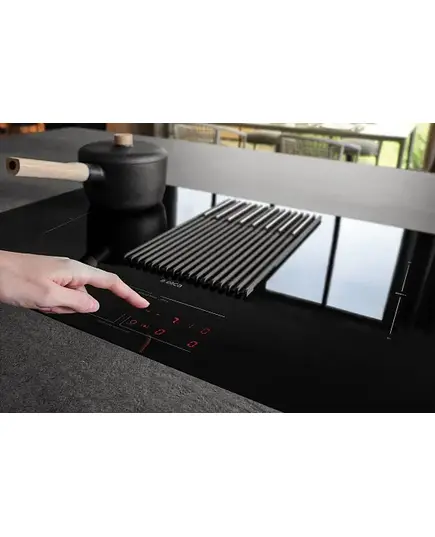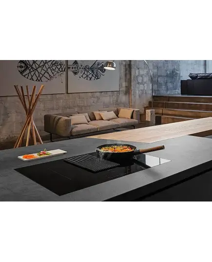 - Обе левых и обе правых конфорки могут объединяться в одну вытянутую зону нагрева благодаря функции Bridge. Таким образом можно использовать нестандартную по форме посуду.