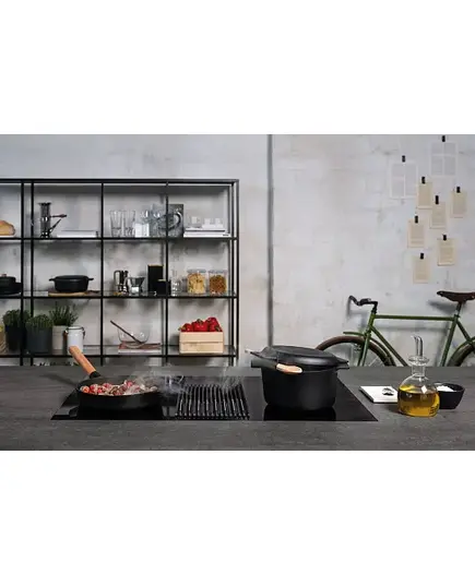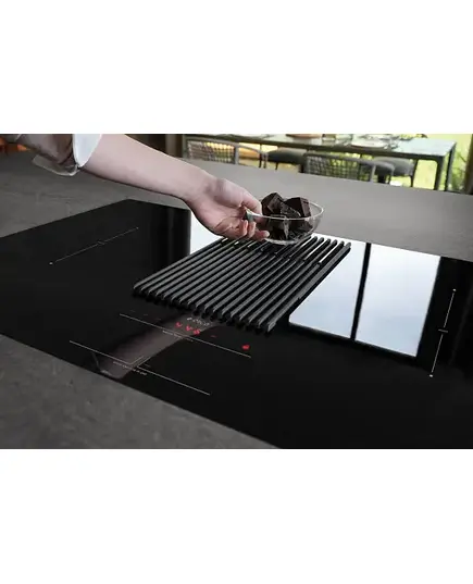 Главная отличительная особенность варочной панели Элика NIKOLATESLA LIBRA BL/A/83 — встроенная вытяжка. Её производительность достигает 630 куб.м/ч, а мощность регулируется по 3 скоростям. Встроенный датчик определяет степень нагрева и регулирует под неё мощность всасывания. Технология Temperature Manager поддерживает тепло уже приготовленных блюд и не даёт им остыть до сервировки на стол. Ограничение максимальной мощности Power Limitation снижает потребление электроэнергии и нагрузку на сеть. Так одновременно могут работать сразу нескольких устройств.