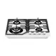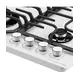 Газовая варочная панель Kuppersberg FG 63 W выполнена из закаленного стекла белого цвета. Такой материал достаточно прост в уходе, характеризуется долгим сроком эксплуатации, устойчив к температурному воздействию и не требует особых условий. Выполненный в Турции прибор имеет удобные габариты для встраивания, поэтому он подойдет даже для небольших по размерам кухонь. Его ширина составляет 61 см, глубина — 51 см, а высота 4,5 см. Работать с этой моделью достаточно легко, так как мощность нагрева видна невооруженным глазом — по силе огня. Горелки с двойной коронкой позволяют увеличить интенсивность в зависимости от диаметра посуды.