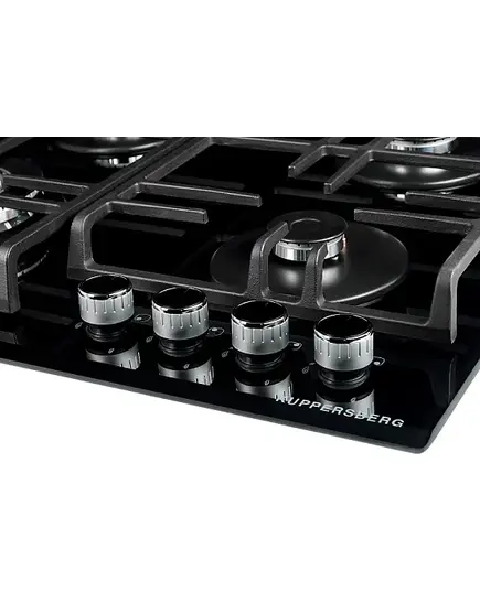 Газовая варочная панель Kuppersberg FQ 63 В имеет турецкое производство, представлена в черном цвете и дополнена чугунными решетками — они выдерживают высокие температуры, долговечны, дополняют дизайн моделей, долго сохраняют свой внешний вид, безопасны при приготовлении, а также шероховатая текстура не позволяет скользить посуде. Поверхность выполнена из закаленного стекла. Такой материал выдерживает нагрев до 450 градусов, не меняет фактуру и расцветку, устойчив к химическому воздействию, повреждениям и износу. По завершению процесса готовки техника без труда очищается от жира и прочих загрязнений.