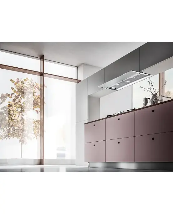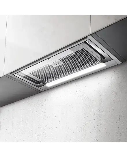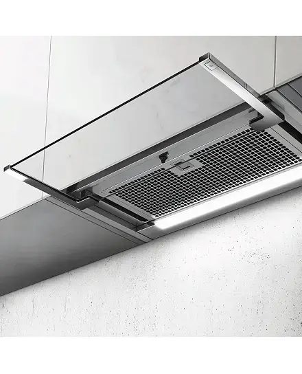 Дизайн. Встраиваемая в подвесной шкаф вытяжка ELICA GLASS OUT IX/A/90 имеет увеличенную ширину 90 см. Дизайн дополняется выдвижным козырьком из прозрачного стекла, который открывает эффективный алюминиевый фильтр, а также защищает от брызг, появляющихся во время приготовления пищи. Экономичная подсветка STRIP LED улучшает обзор над варочной поверхностью и потребляет всего 7 Вт электроэнергии.