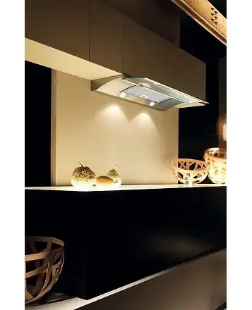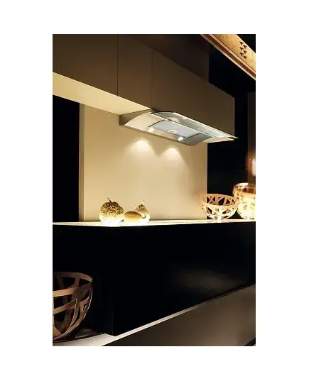 Дизайн. Встраиваемая в подвесной шкаф вытяжка ELICA GLIDE IX/A/90 имеет увеличенную ширину 90 см. Дизайн дополняется выдвижным козырьком из прозрачного стекла, за которым расположен эффективный жироулавливающий фильтр из нержавеющей стали. Две яркие галогенные лампы общей мощностью 40 Вт станут полноценным источником освещения варочной зоны.