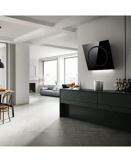 Дизайн. Легенда дома Elica — настенная вытяжка OM AIR SENSE BL/F/75 представляет собой идеальную геометрию: круг внутри квадрата. Фасад модели выполнен из черного стекла и гармонично дополнит кухонное помещение любой стилистической направленности. Наклонная конструкция экономит место в пространстве и не создает помех при готовке.