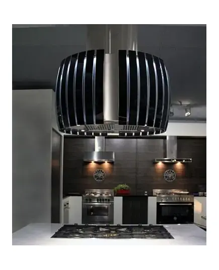 Компактная конструкция и островной тип монтажа расширяют возможности при планировании расположения прибора. Эргономичность позволяет совместить небольшие габариты с высокой эффективностью: до 800 м³/ч при стандартном моторе. Удобная панель управления, оснащённая кнопками переключения и световой индикацией, делает взаимодействие с интерфейсом простым и понятным интуитивно. Четыре рабочих скорости помогают удобно отрегулировать мощность забора воздуха. Таймер гарантирует автоматическое отключение через 15 минут после использования этой опции.