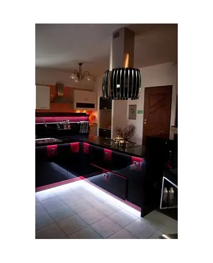 Вытяжка Falmec Design+ PRESTIGE isola 75 inox vetro nero (800) создана в уникальном оформлении, благодаря которому каждая кухня превратится в уютный островок. Отделка купола, изготовленного из закалённого стекла скотч-брайтом, формирует специфическую фактуру, а подсветка с помощью светодиодной полосы создаёт неповторимую атмосферу покоя и доверия, служа отличным источником рассеянного света. Лампы того же класса обеспечивают равномерную освещённость поверхности под оборудованием, облегчая работу у плиты.