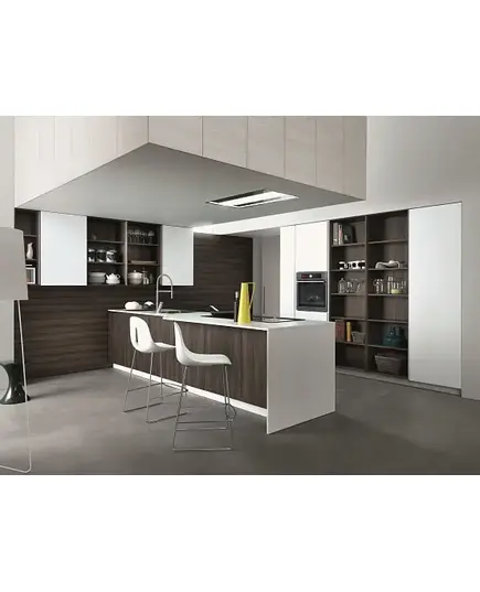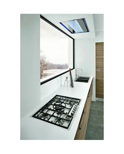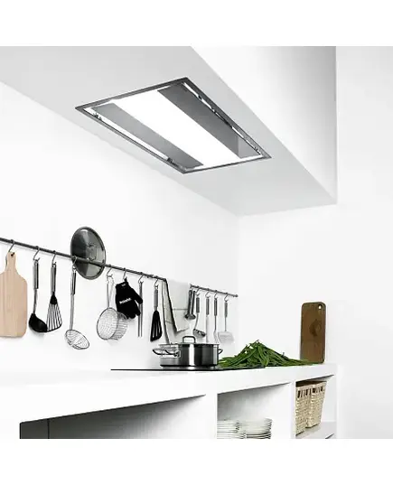 При работе с мотором Slim можно использовать комплект угольных фильтров для потолочной рециркуляции. Всасывание воздуха лишь по периметру повышает мощность, снижает уровень шума и помогает экономить электроэнергию. К Фалмек Design+ NUVOLA soffitto 90 inox можно подключить внешний мотор различных модификаций и экстрактор. Они приобретаются дополнительно.